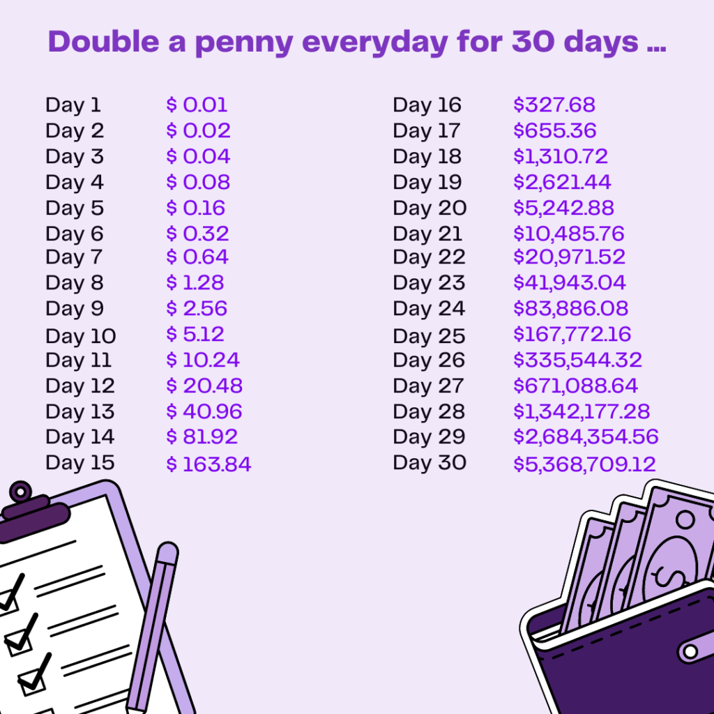 Let’s take a moment to breakdown the incredibly powerful concept of momentum. The best example to hit this point home is doubling a penny every day for 30 days (see chart). Notice that during the early days not much is happening, and as of the 20th day, the money is less than $6,000. However, as day 30 approaches, momentum begins to build having a huge impact, and the amount reaches over $5 million on day 30. This is the amazing power of momentum in action and the exponential growth it produces displayed in all its glory. It is imperative to understand that momentum is a function of consistency over time and will take patience…but is well worth the wait.